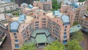 Het gebouw, ontworpen in de jaren tachtig door het gerenommeerde architectenbureau Alberts & Van Huut, staat bekend om zijn uitgesproken organische architectuur. Met zijn ronde