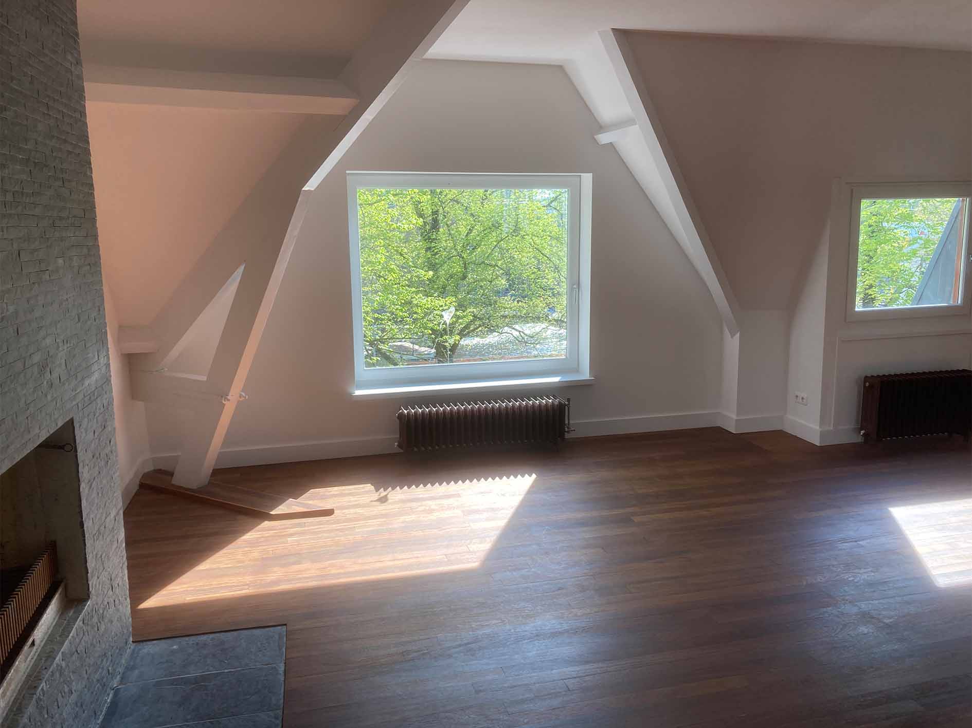 Maar bouwmanagement heeft de nieuwe eigenaar begeleidt bij het renoveren en verbouwen van het pand tot een bedrijfsverzamelgebouw voor creatieve bedrijven met respect en behoud van veel details welke Aat Veldhoen in de loop der jaren in zijn atelier en woning had aangebracht. Zo zijn originele beschilderde tegels in nieuwe tableaus hergebruikt en zijn verschillende schilderingen en sculpturen geïntegreerd in het ontwerp. Na een Nulmeting en ontwerp heeft Maar! bouwmanagement de selectie van de aannemer verzorgt en de gehele uitvoering begeleidt. Het is een integraal project geworden waarbij het ruim 100 jaar oude pand verduurzaamd is naar Energielabel A. Ook de tuin en de buitengevel is bij deze verbouw aangepakt waardoor de eigenaar weer jaren vooruit kan.