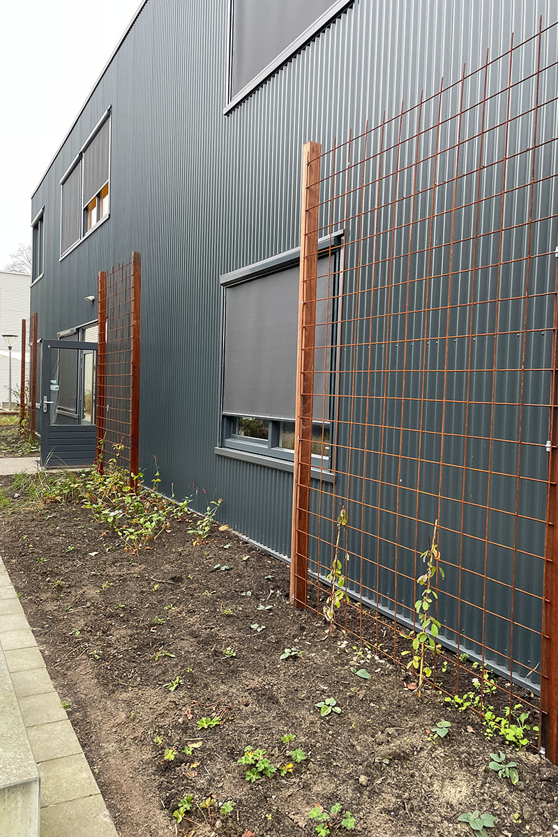 In opdracht van Nuovo Scholengroep heeft Maar! bouwmanagement in 2024 voor de middelbare school X11 in Utrecht een nieuw en groen schoolplein ontworpen. Op basis van de wensen en eisen van X11, waarbij hergebruik en vergroening centraal stonden, is een ontwerp gemaakt voor de schoolpleinen op de Van Bijnkershoeklaan en de Grebbeberglaan. Met het ontwerp van Maar! als uitgangspunt is een aanbesteding opgezet voor de uitvoering van de terreininrichting en groenvoorziening. Maar! heeft deze aanbesteding met De Koninklijke Ginkel Groep als uitkomst en de bijbehorende uitvoeringsfase begeleidt. Ginkel Groep heeft een beplantingsplan opgesteld en hierbij is speciale aandacht geweest voor biodiversiteit en beplanting die op korte en middellange termijn bloeien, met het oog op de tijdelijkheid van de school op deze locatie. Ook is er in het proces de link met het onderwijs gelegd in de biologie lessen en heeft er een streetart expositie plaatsgevonden tijdens de uitvoeringsfase, in nauw overleg met de groenaannemer, waarbij diverse (bouw)elementen zijn gebruikt bij de expositie.